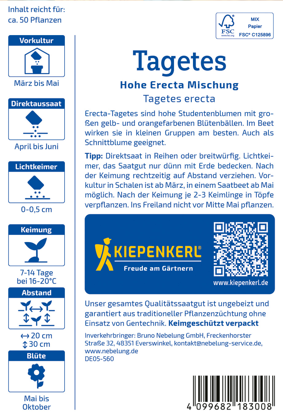 Produktinformationen "Tagetessamen Hohe Erecta Mischung"