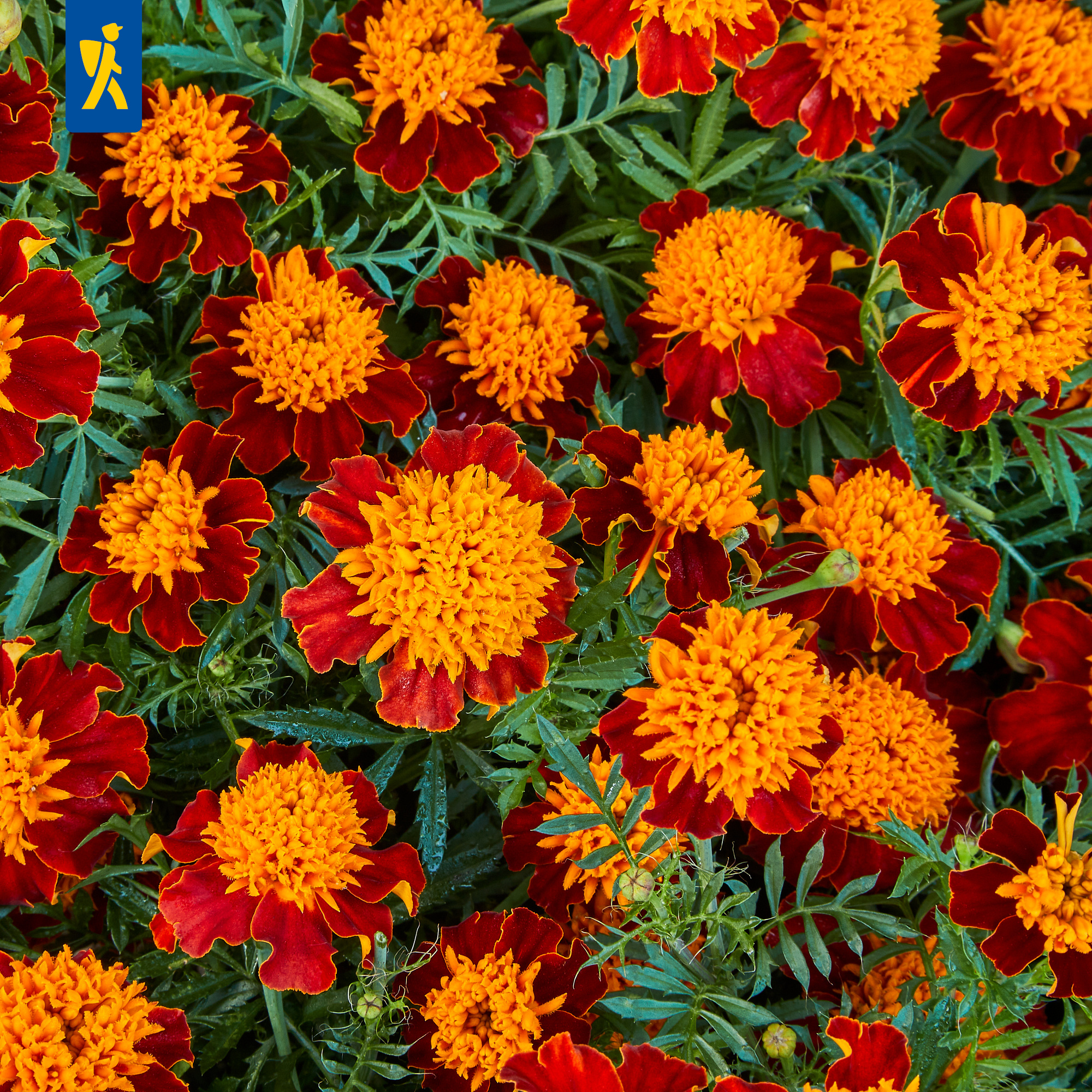 Die 'Orangeflamme' entzückt mit ihren hübschen kleinen Blüten, die eine orangegelbe Mitte und samtrote Blütenblätter tragen! Diese robuste Studentenblume erreicht eine Höhe von 20 bis 30 cm und eignet sich perfekt für Beete, Töpfe und Kästen. Ihre lebendigen Farben bringen Freude in jeden Garten und schaffen eine fröhliche Atmosphäre. Halten Sie einige Pflanzen bereit, um blühende alte Freundschaften zu feiern und genießen Sie die strahlende Pracht dieser charmanten Blume! Lassen Sie die 'Orangeflamme' in Ihrem Garten erblühen und verleihen Sie Ihrem Außenbereich ein Stück herzlicher Lebendigkeit! Genießen Sie einen Hauch von Wärme mit der Studentenblume 'Orangeflamme'!| Kurzbezeichnung : | Tagetes Orangeflamme |