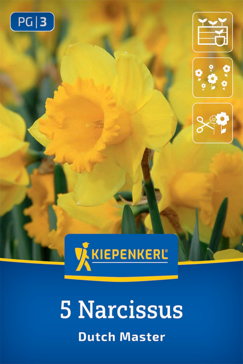 Die Narzisse 'Dutch Master' ist eine holländische Sorte, die von März bis April prächtig große, strahlend goldgelbe Blüten liefert. Sie wächst ca. 40 cm hoch und ist nicht nur im Garten, sondern auch als Schnittblume äußerst dekorativ. Glücklicherweise ist die Trompetennarzisse nicht nur winterhart, sondern verwildert auch leicht, sodass Sie mehrjährig Freude an ihr haben.