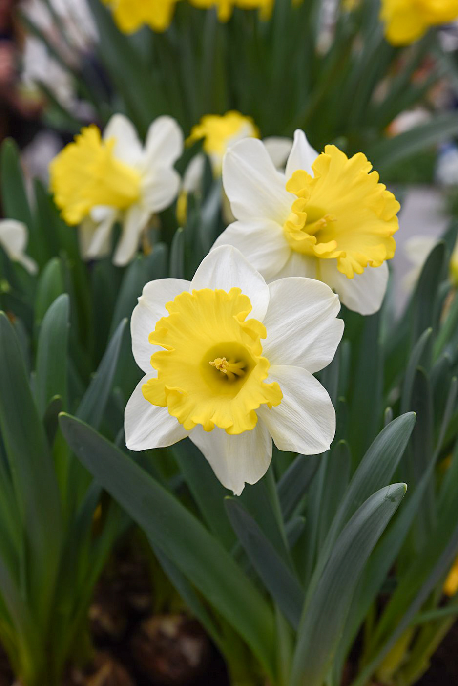 Farbbeschreibung: Weißer Kranz, Schwefelgelbe Trompete| Kurzbezeichnung : | Trompeten-Narzissen Attraction |