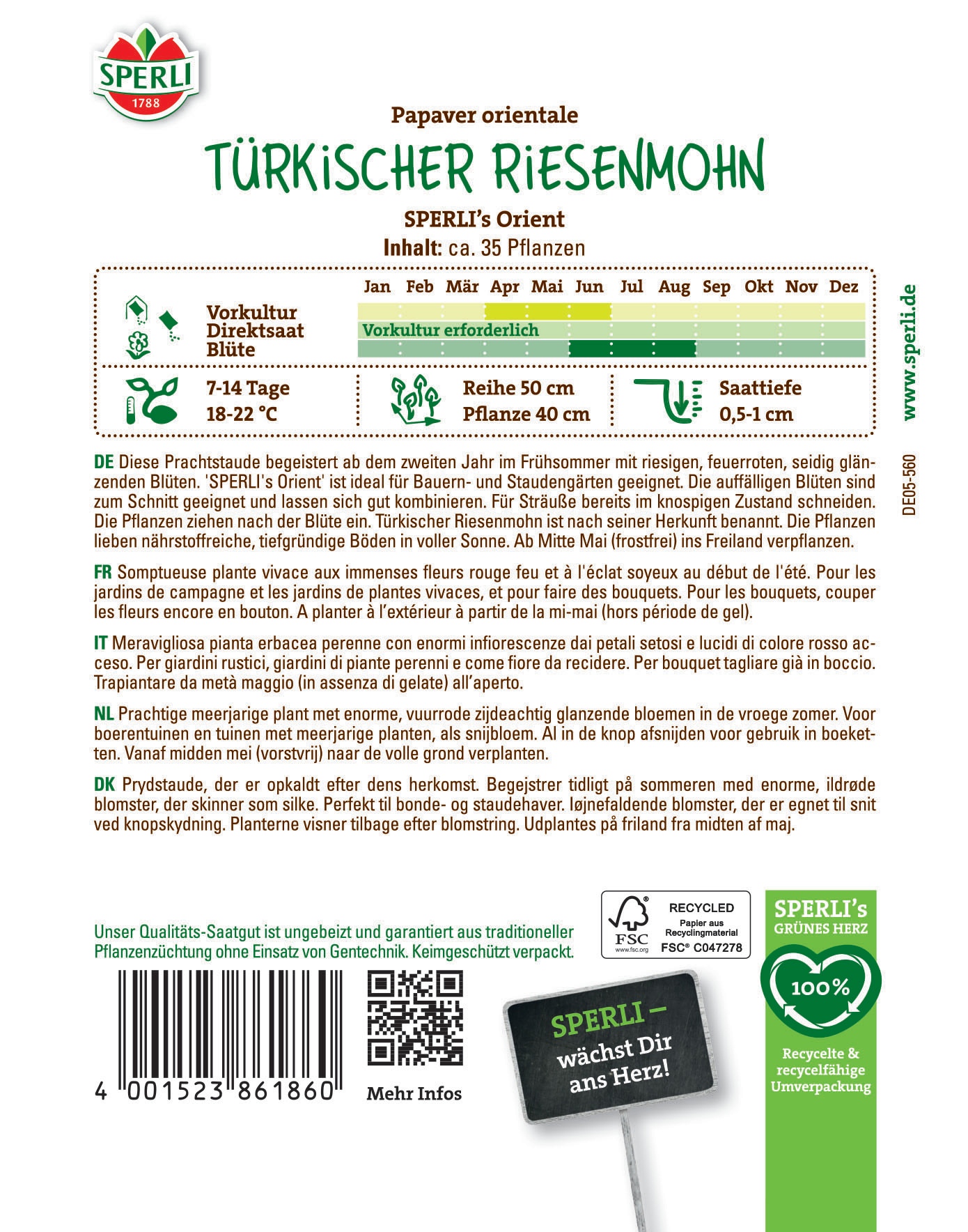 Produktinformationen "Türkischer Riesenmohnsamen SPERLI's Orient"
