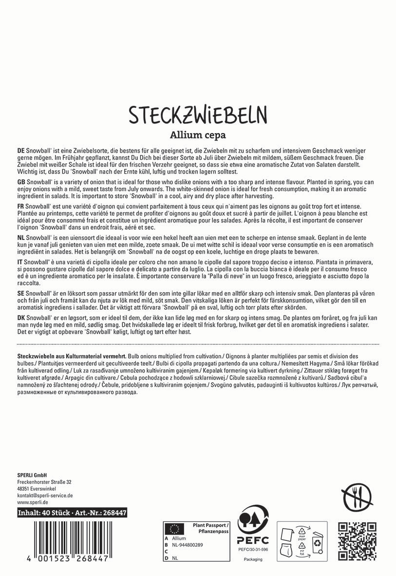| Kurzbezeichnung : | Weiße Steckzwiebel Snowball |