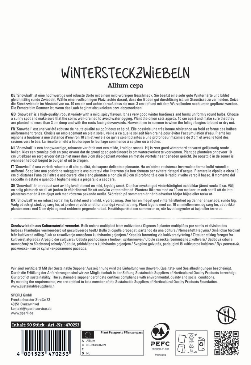 | Kurzbezeichnung : | Weiße Steckzwiebel Snowball |