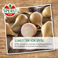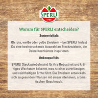 Wähle einen vollsonnigen Platz, achte darauf, dass der Boden gut durchlässig ist, um Staunässe zu vermeiden. Setze die Steckzwiebeln im Abstand von ca. 10 cm ein und achte darauf, dass sie max. 3 cm tief und mit dem Wurzelboden nach unten gepflanzt werden. Die Erntezeit im Sommer ist, wenn das Laub beginnt abzuknicken bzw. abzutrocknen.