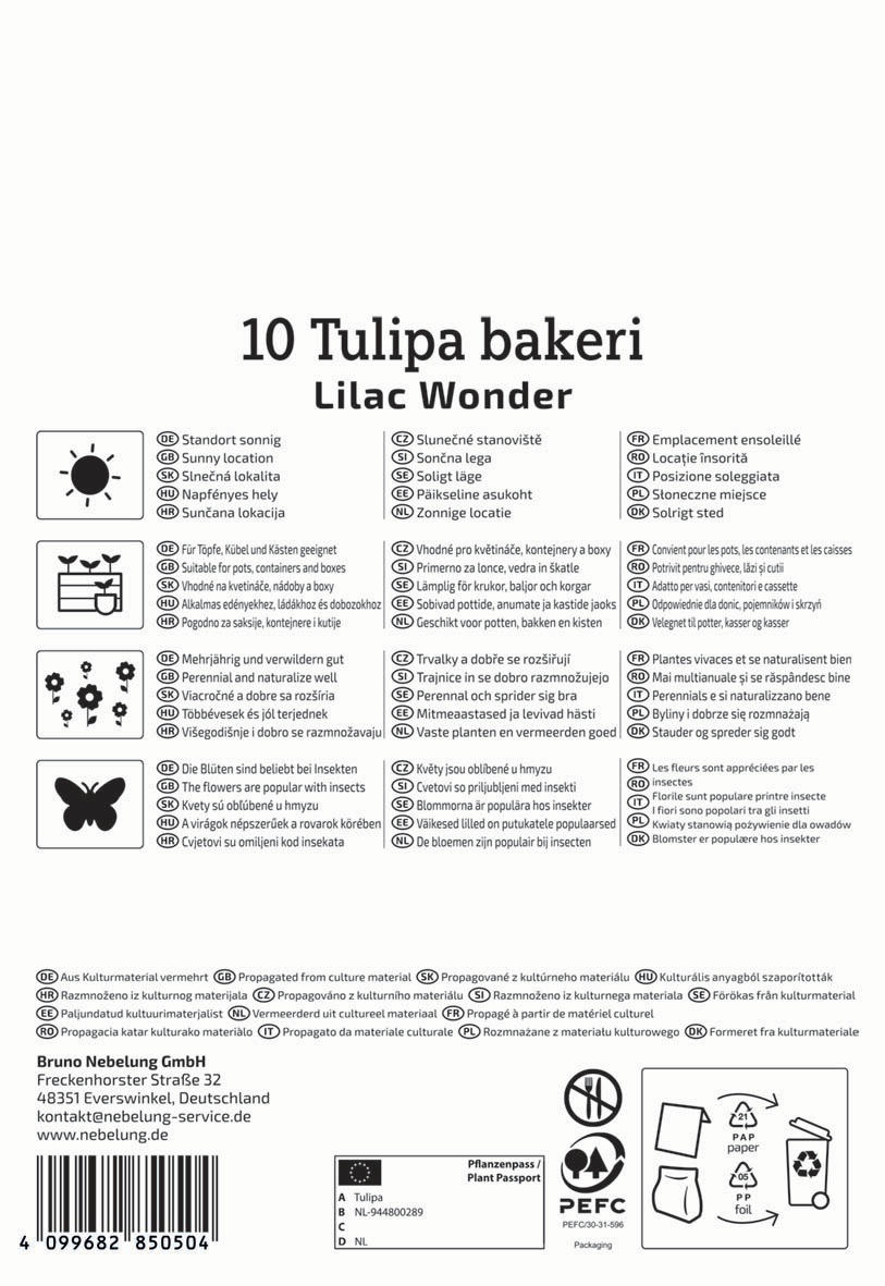 Eine Besonderheit im Garten ist die Wildtulpe 'Lilac Wonder'. Dank ihrer speziellen Blütenform unterscheidet sie sich merklich von klassischen Tulpen. Ihre Blütenblätter sind in einem sanften Rosa- bis Lilaton gehalten und gehen in der Mitte in ein intensives Gelb über. Ihre Zartheit wird durch die schmalen Blätter abgerundet. Diese 15 cm hohen Blumen lassen sich verwildernd im Freiland oder auch in Gefäßen pflanzen. Sehr schön sehen sie auch in Steingärten aus, wo sie Nützlinge des Weiteren mit wertvoller Nahrung versorgen.