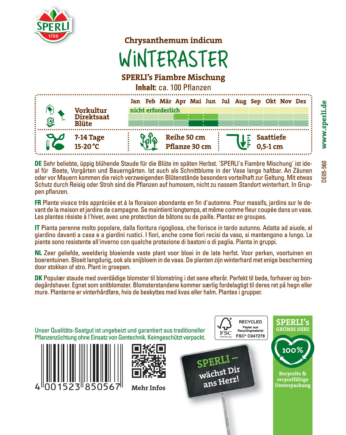 Produktinformationen "Winterasternsamen SPERLI's Fiambre Mischung"