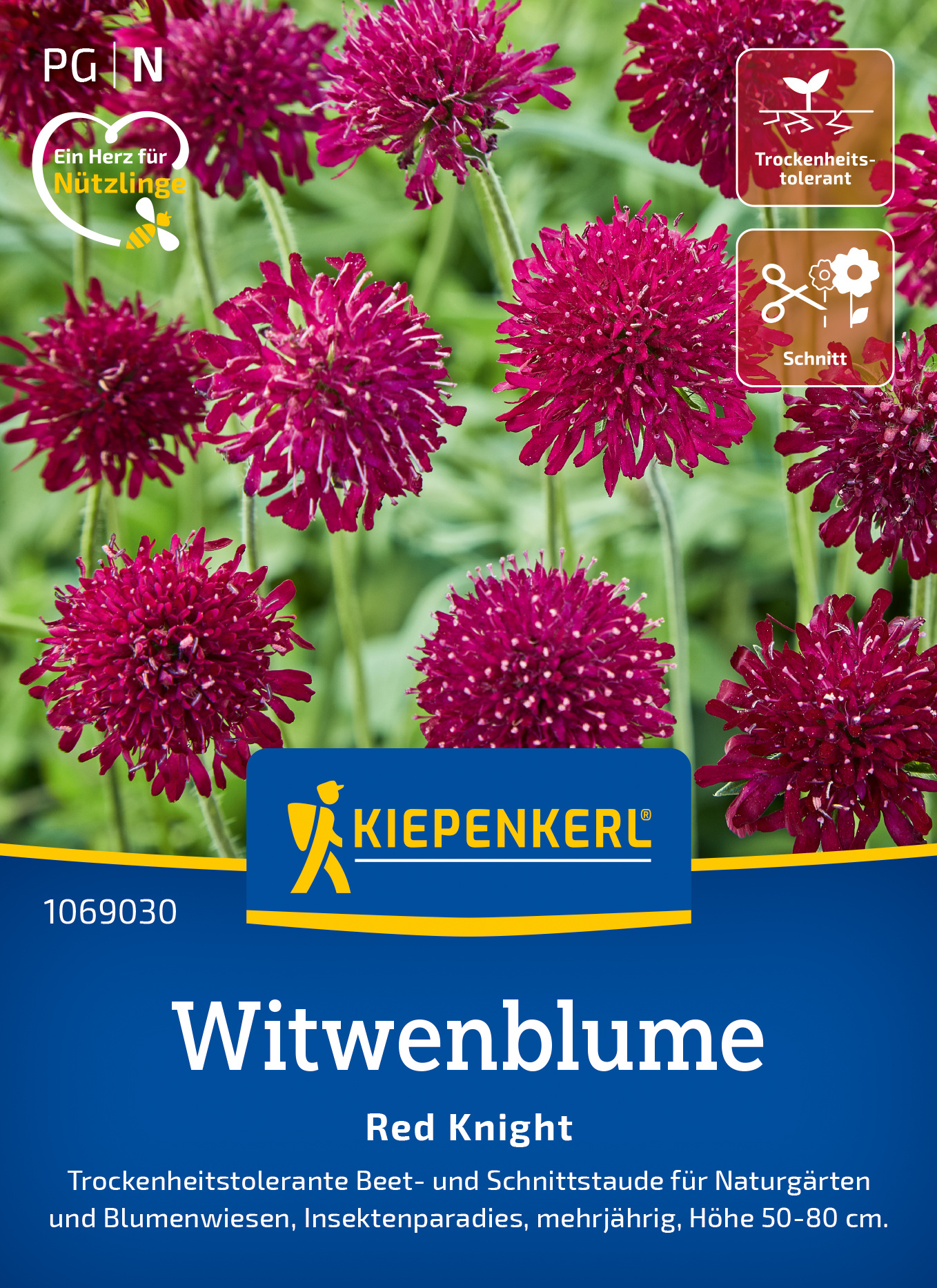 Die Witwenblume 'Red Knight' bringt mit ihren rubinroten Blüten Farbe in jeden Garten. Diese trockenheitstolerante Staude ist ein wahrer Magnet für Bienen und Schmetterlinge und eignet sich hervorragend für eine ansprechende Beeteinrichtung. Ihre auffälligen Blüten setzen lebendige Akzente und blühen über Wochen. Darüber hinaus ist die 'Red Knight' vielseitig einsetzbar und schafft eine harmonische Atmosphäre in Ihrem Garten. Sie zieht nicht nur Insekten an, sondern fördert auch die Artenvielfalt. Genießen Sie die Schönheit und das lebendige Treiben, das diese Pflanze mit sich bringt! Erleben Sie die prachtvolle Witwenblume 'Red Knight' in Ihrem Garten!| Kurzbezeichnung : | Witwenblume Red Knight |