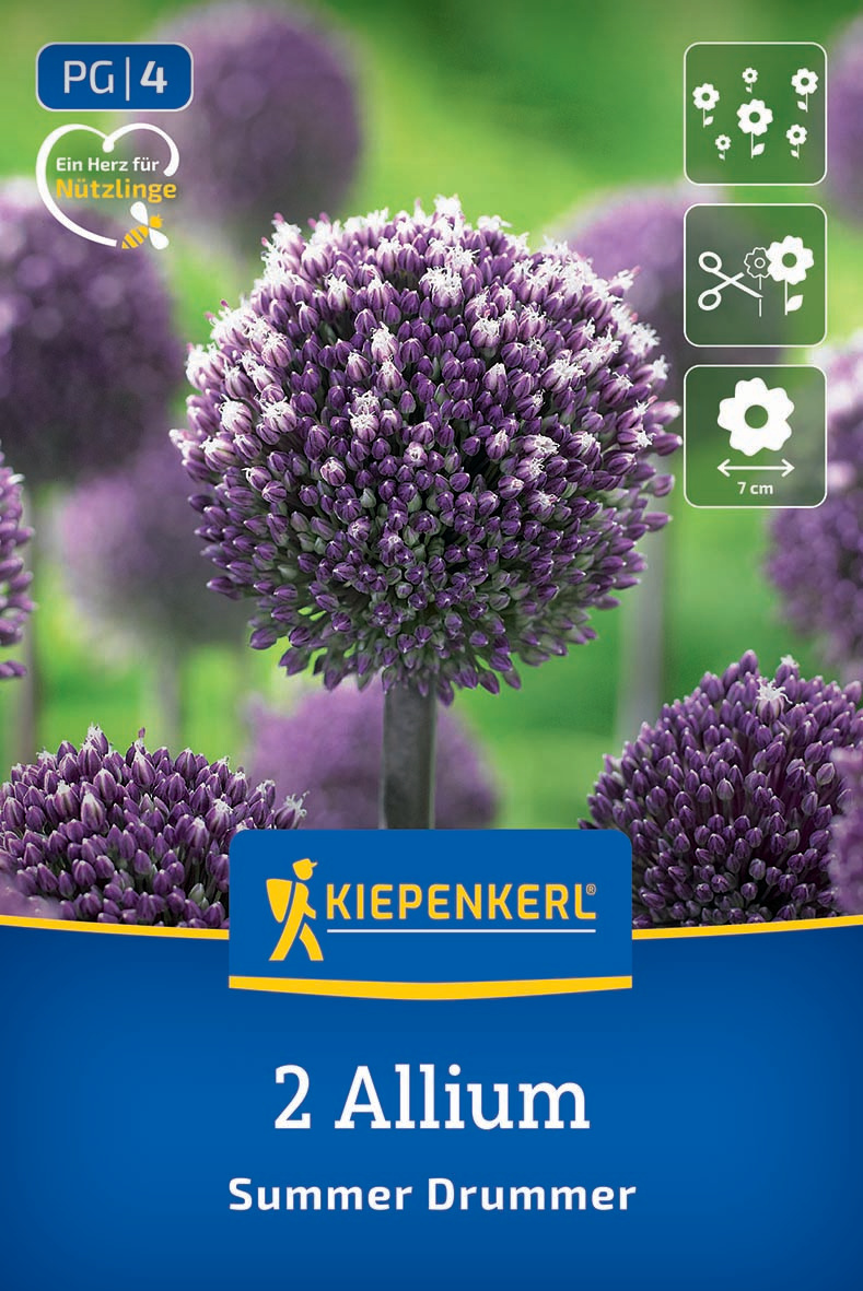 Mit durchschnittlich 150 cm Wuchshöhe ist dieser Zierlauch im Garten unübersehbar. Wenn 'Summer Drummer' im Juli und August die riesigen Blütenbälle ausbildet, ist die imposante Erscheinung perfekt. Die unzähligen Einzelblüten in Purpur und Weiß lassen nicht nur jedes Gärtnerherz höher schlagen, sondern bieten Bienen, Hummeln & Co. auch jede Menge Nektar.