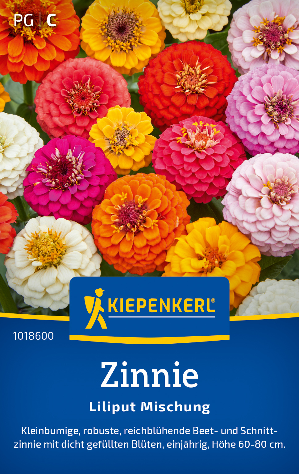 Die Liliput-Zinnien bezaubern mit ihren kleinen, dicht gefüllten Pomponblüten in vielen traumhaften Farben! Diese einjährigen Pflanzen sind perfekt für kleine Gruppen im Beet, für Töpfe, Kästen und das Hochbeet und erreichen eine Höhe von 60 bis 80 cm. Ihre lebendigen Farben und die kompakte Wuchsform machen sie zur idealen Wahl für kreative Gartengestaltungen. Setzen Sie mit den Liliput-Zinnien fröhliche Akzente in Ihrem Garten und genießen Sie die Vielfalt ihrer kleinen, aber wirkungsvollen Blüten, die jedes Arrangement zum Strahlen bringen! Ein blühendes Farbenspiel erwartet Sie mit den Liliput-Zinnien!| Kurzbezeichnung : | Zinnie Liliput Mischung |