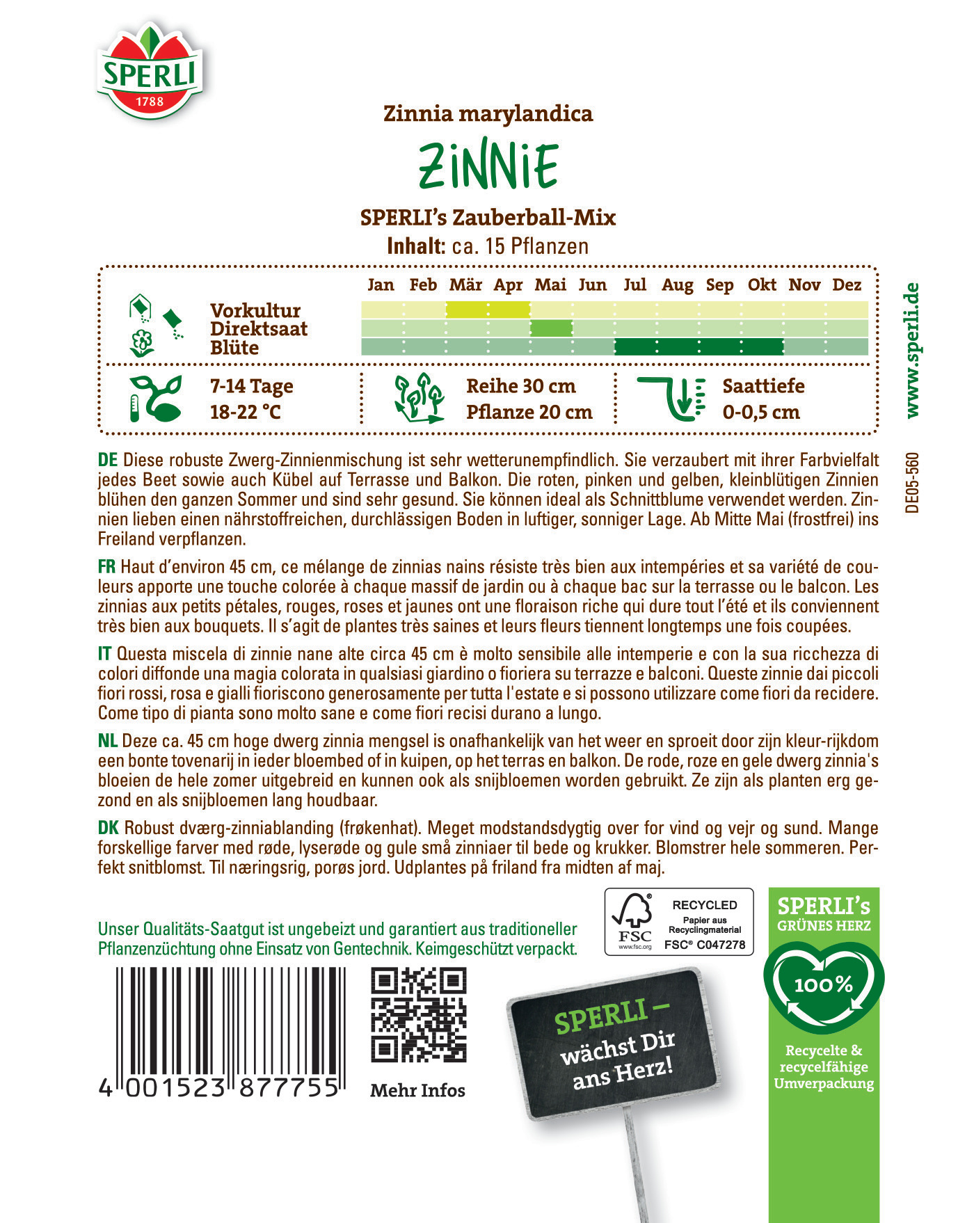 Produktinformationen "Zinniensamen SPERLI's Zauberball-Mix"
