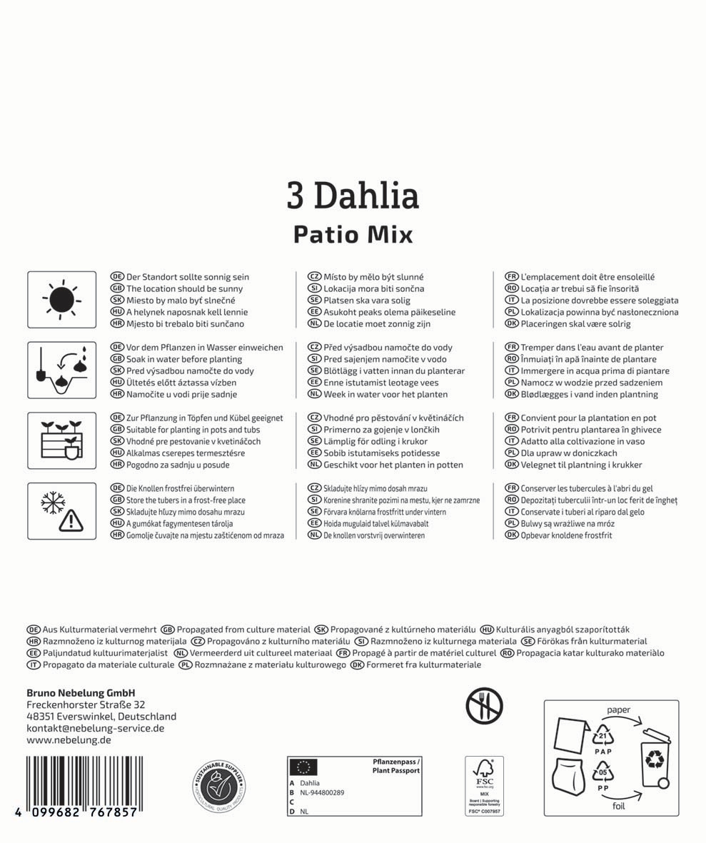 Wer zu Zwergdahlien greift, der weiß den kompakten Wuchs zu schätzen. Gut verzweigt und niedrig wachsend erreicht diese Zwerg-Dahlie Mischung eine Wuchshöhe von nur 40 cm. So können die Blumenzwiebeln nach dem letzten Frost nicht nur in Beet gepflanzt werden, sondern sind auch für Blumentöpfe und Pflanzkübel ideal geeignet. Im Garten, auf der Terrasse oder auf dem Balkon sind die kunterbunten, mehrjährigen Schönheiten so ein echter Blickfang!