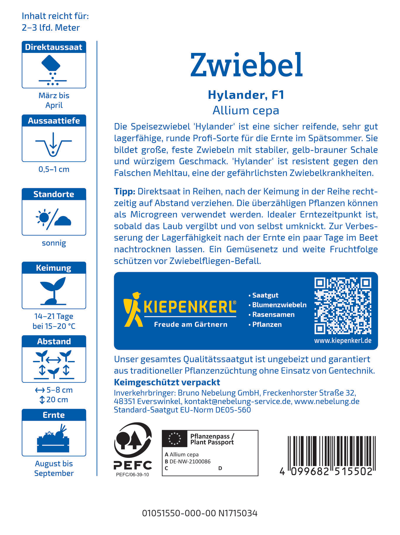 Die Speisezwiebel 'Hylander' ist für ihre Sicherheit beim Reifen bekannt und bietet eine hervorragende Lagerfähigkeit. Diese runde Profi-Sorte entwickelt große, feste Zwiebeln mit einer stabilen, gelb-braunen Schale und einem unverwechselbaren würzigen Geschmack. Perfekt für die Ernte im Spätsommer, ist 'Hylander' eine optimale Wahl für Gärtner, die verlässliche und schmackhafte Zwiebeln suchen. Darüber hinaus ist diese Zwiebel resistent gegen den Falschen Mehltau, eine der gefährlichsten Krankheiten, die Zwiebelpflanzen befallen kann. Das macht die 'Hylander' zur idealen Auswahl für gesundes Gärtnern. Genießen Sie die vielseitigen Einsatzmöglichkeiten dieser robusten Zwiebel in Ihren Rezepten! Entdecken Sie die Freude am Gärtnern mit unseren hochwertigen Produkten!| Kurzbezeichnung : | Zwiebel Hylander, F1 |