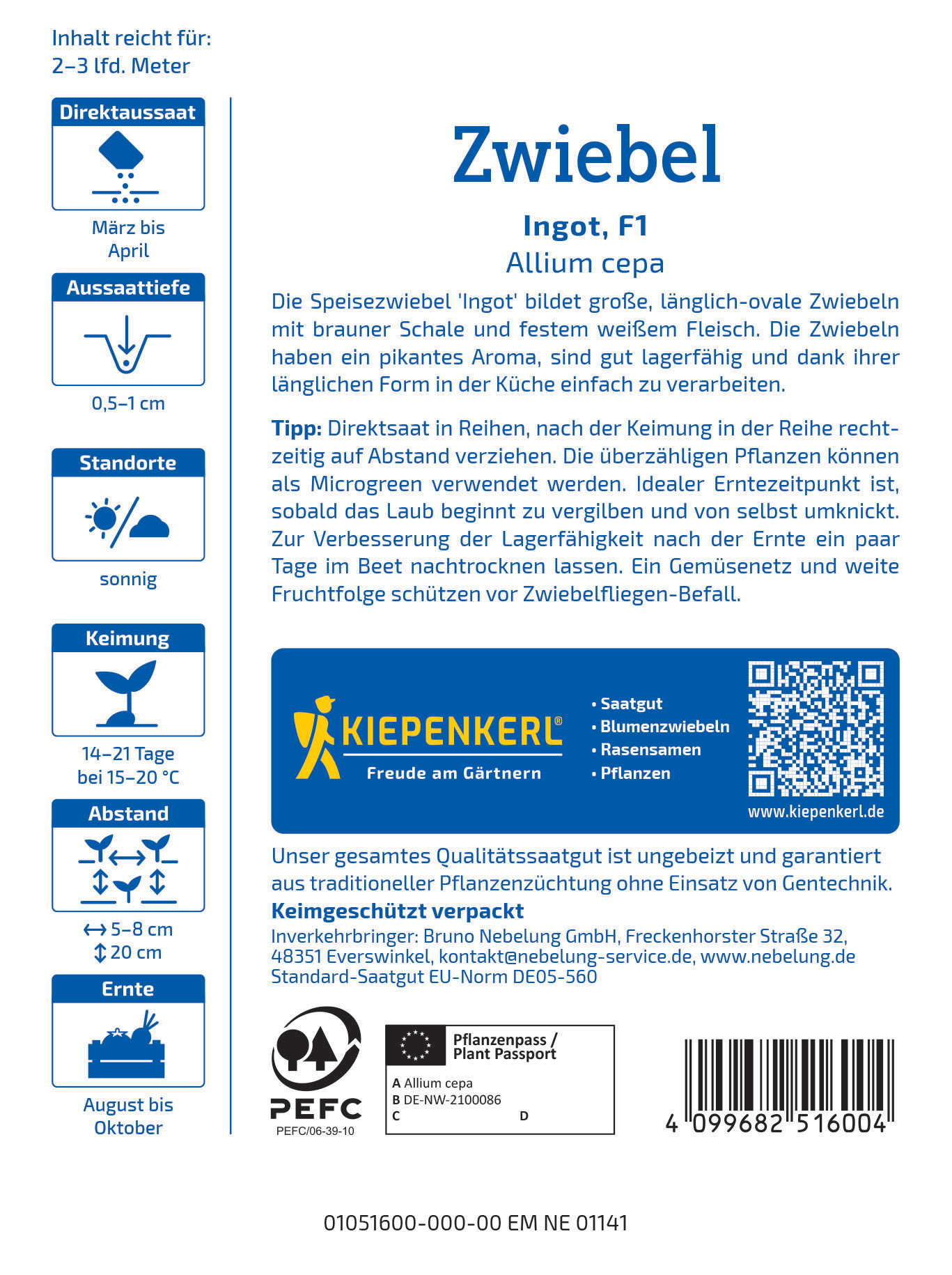 Die Speisezwiebel 'Ingot' beeindruckt durch ihre großen, länglich-oval geformten Zwiebeln mit brauner Schale und festem, weißem Fleisch. Ihr pikantes Aroma sorgt dafür, dass sie in der Küche vielseitig einsetzbar ist und leicht verarbeitet werden kann. Diese Zwiebel ist nicht nur einen Blick wert, sondern überzeugt auch durch ihre ausgezeichnete Lagerfähigkeit. Ideal für die Zubereitung von vielen Rezepten, sei es in Salaten, Eintöpfen oder als Beilage – die 'Ingot' bietet eine geschmackliche Bereicherung und Frische aus Ihrem eigenen Garten. Lassen Sie sich von der Qualität und dem Geschmack dieser Zwiebel überzeugen! Entdecken Sie die Freude am Gärtnern mit unseren hochwertigen Produkten!| Kurzbezeichnung : | Zwiebel Ingot, F1 |
