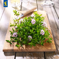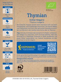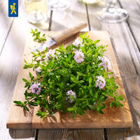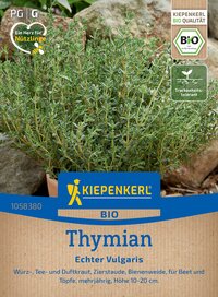 Der Echte Bio-Thymian begeistert durch seinen intensiven Duft und einen aromatischen, leicht pfefferigen Geschmack. Mit seinen kleinen Blättern und zarten Trieben eignet er sich sowohl frisch als auch getrocknet vielseitig für die mediterrane Küche. Verwenden Sie ihn zum Würzen von Gerichten oder als aromatisches Teekraut, um Ihren Speisen eine besondere Note zu verleihen. Nach der Pflanzung erfreut er Sie mit einer reichen Ernte, die Ihren Gerichten Farbe und Geschmack verleiht. Erleben Sie die Freude am eigenen Anbau und die Vielseitigkeit dieses aromatischen Krauts! Lassen Sie sich von den Möglichkeiten inspirieren und bringen Sie Frische auf den Tisch. Entdecken Sie den Echten Bio-Thymian für aromatische Gerichte und köstliche Tees!| Kurzbezeichnung : | BIO Thymian Echter Vulgaris |