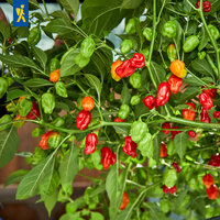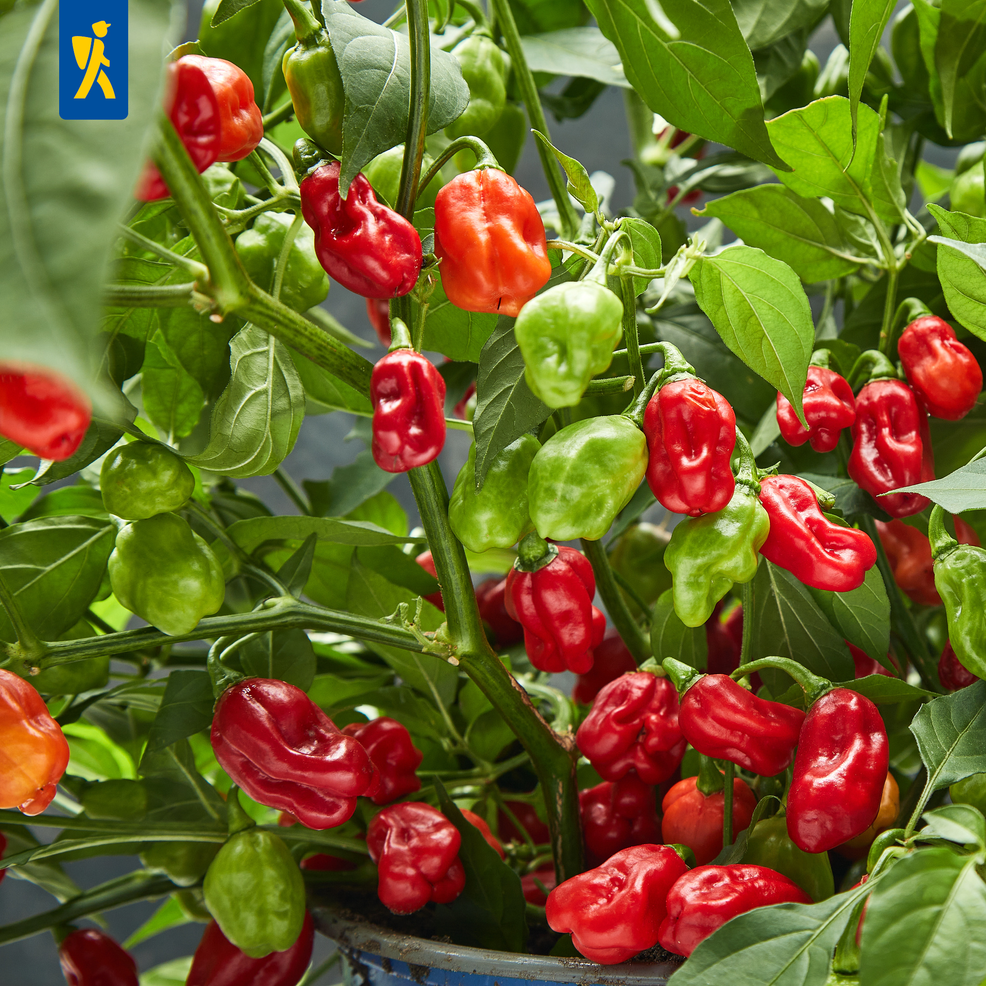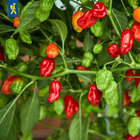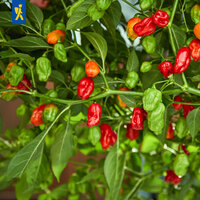 Die Habanero-Chili 'Hana Rot®' glänzt mit von Grün nach feurig-rot reifenden, 10-20 g schweren Früchten. Mit einer Schärfe von ca. 150.000 Scoville gehört sie zu den schärfsten Chilis und bietet fruchtige Würzkraft. Die roten Früchte haben die stärkste Aromenentfaltung und sind ideal für die Verwendung in kleinen Mengen, frisch oder getrocknet. Sie gedeiht bestens an geschützten Orten im Freiland, im Gewächshaus, Hochbeet und Kübel, mit einer Wuchshöhe von 80 bis 100 cm. Entdecken Sie die feurige Schärfe dieser außergewöhnlichen Habanero! 'Hana Rot®' bringt aufregende Aromen und Intensität in Ihre Gerichte. Lassen Sie die Habanero-Chili 'Hana Rot®' in Ihre Küche einziehen und genießen Sie die Würze!| Kurzbezeichnung : | Chili-Paprika Hana Rot®, F1 |