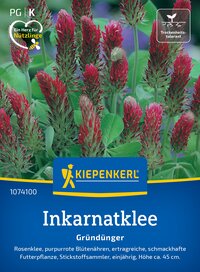 Inkarnatklee bildet auffallend purpurrote Blüten und ist eine nützlingsfreundliche Pflanze, die schnell und ertragreich wächst. Er schützt den Boden vor Austrocknung und bildet wertvolle Stickstoffverbindungen, die für die Fruchtbarkeit Ihres Gartens von Bedeutung sind. Profitieren Sie von den zahlreichen Vorteilen dieser nützlichen Pflanze in Ihrem Garten! Der Inkarnatklee ist nicht nur gut für den Boden, sondern bringt auch Farbe und Leben in Ihre Gartengestaltung. Fördern Sie die Artenvielfalt und sichern Sie die Nahrungsquelle für viele nützliche Insekten. Nutzen Sie Inkarnatklee zur Verbesserung Ihrer Bodenqualität!| Kurzbezeichnung : | Inkarnatklee Rosenklee |
