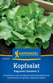 Der Butterkopfsalat 'Kagraner Sommer 2' zeichnet sich durch große, feste, hellgrüne Köpfe aus, die einen leicht nussigen Geschmack bieten. Diese Sorte ist hitzeverträglich und schossfest, was ihn ideal für den Sommeranbau macht. Ihren Garten bereichert dieser Salat sowohl geschmacklich als auch optisch. Genießen Sie die zarten Blätter und die köstliche Frische in Ihren Sommergerichten. Egal ob in einem bunten Gartensalat oder als Zutat für verschiedene Rezepte – 'Kagraner Sommer 2' bringt Vielfalt auf den Tisch. Mit Butterkopfsalat 'Kagraner Sommer 2' werden Ihre Sommergerichte noch köstlicher – jetzt pflanzen!| Kurzbezeichnung : | Kopfsalat Kagraner Sommer 2 |